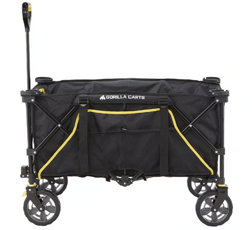 This durable, high quality wagon features a huge 36 inches by 21 inches by 15 inches bed with twice the capacity of comparable wagons and folds compactly for easy storage. It includes a comfort handle for easier pulling, upgraded steering and brakes for better maneuverability, expandable sides for extra storage, built in cup holders, and handy zipper pockets for small items like phones and keys. Perfect for hauling gear, chairs, or umbrellas with ease.